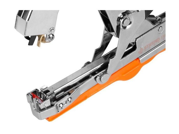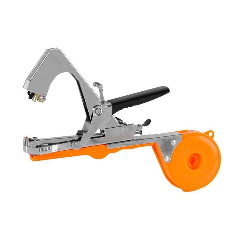 Gardening tool for stapling and tying plants, with an ergonomic design for comfortable use. Sturdy stainless steel construction.