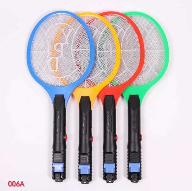 Rechargeable large electric racket, with triple electric net of voltage 2500V and rechargeable battery 4.2V/400mAh.