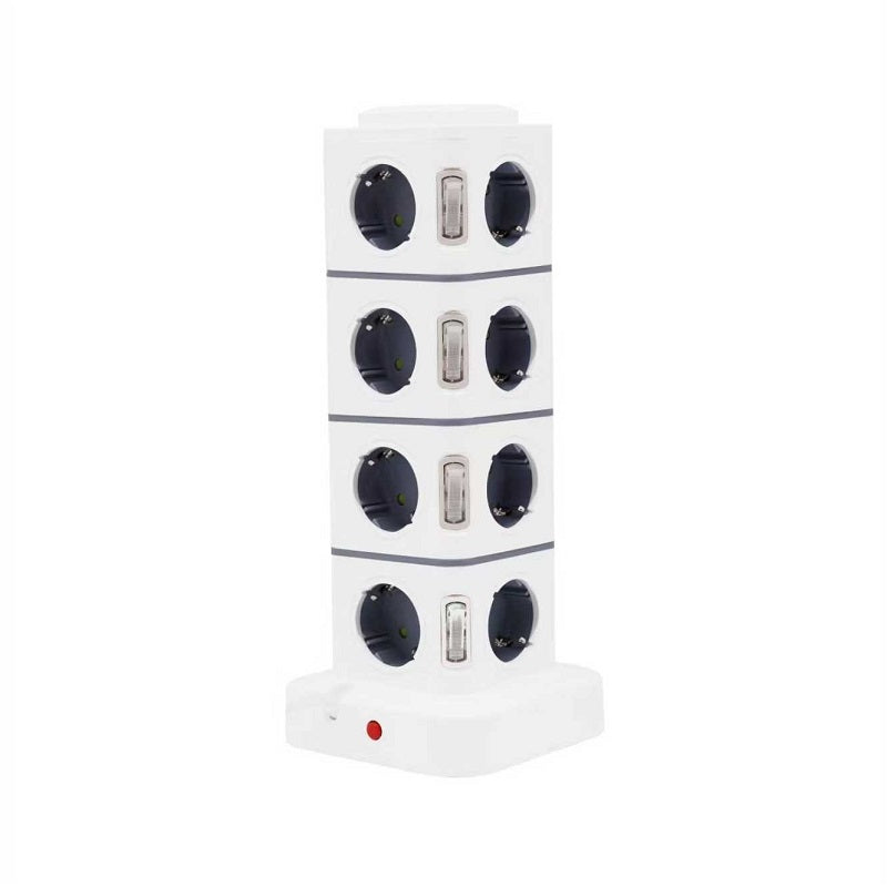 Vertical 16-position multi-socket with switches and Suko socket - RC-G16P.