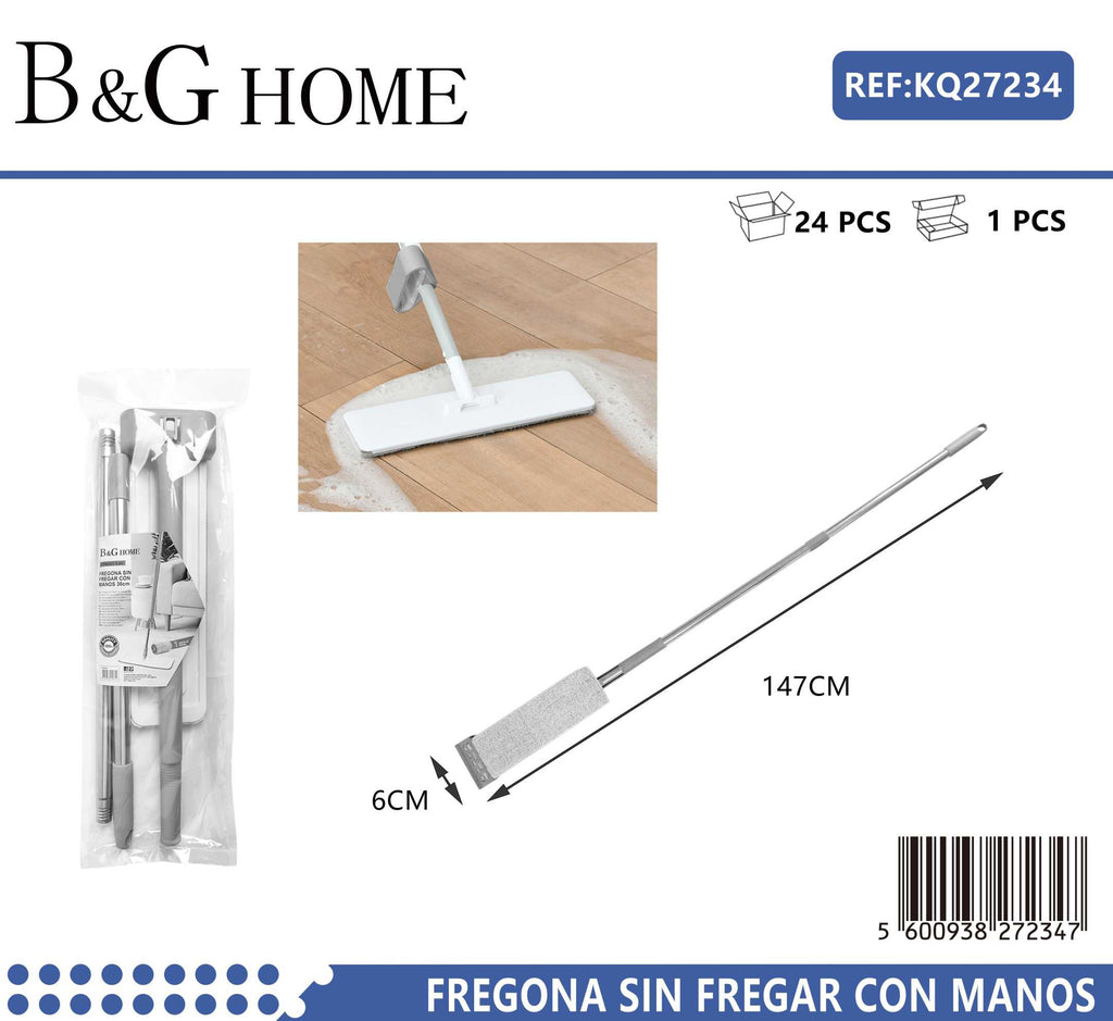 Save time and effort when cleaning your home with this practical multi-tool. Hand-held mop with absorbent cloth, for easy and quick mopping without effort and in no time. The head is foldable to adapt and fit under your furniture. It binds and absorbs dust and dirt immediately, without leaving marks and streaks.