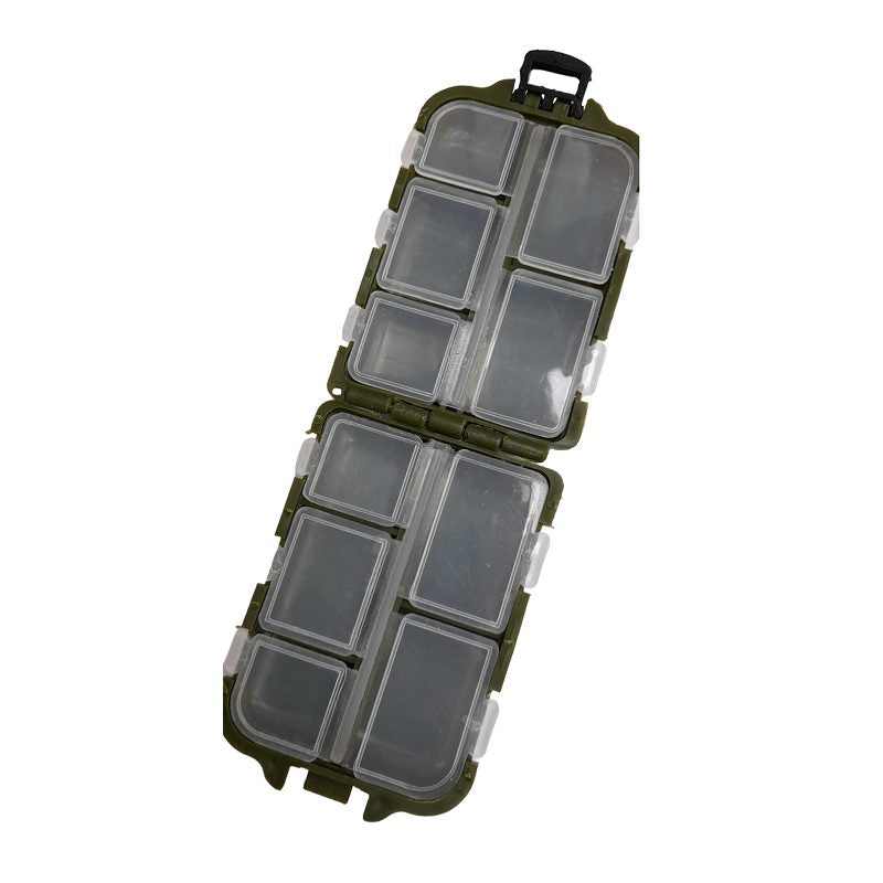 Plastic storage box for fishing accessories, in a mini practical size.