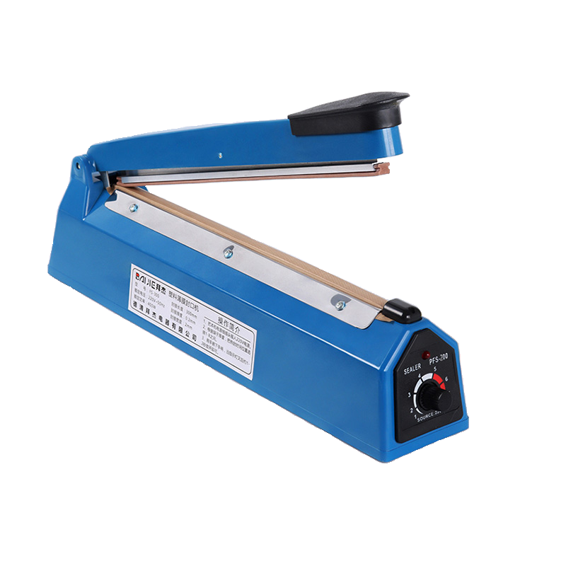 Heat sealing machine for closing plastic bags. Ideal for packaging various items. Easily seals any type of plastic bag (PE/PP).