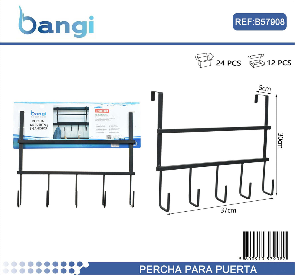 Metal door hanger with sturdy construction and easy installation on your door thanks to the special hooks, without the need for screws. Ergonomic and modern design that can fit in any space, ideal for your bathroom, bedroom or storage room.
