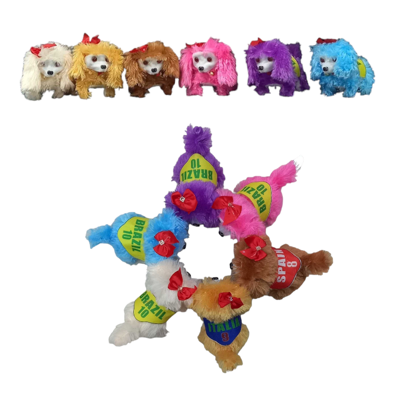 Plush electronic animal that walks and makes sounds. Now you have your own pet to take care of and go on endless walks together! Operates on 2 AA batteries (not included). Dimensions: approx. 12 x 15 x 9cm. OnOff button.