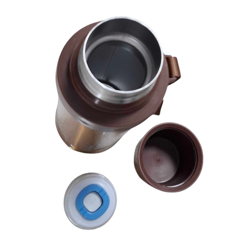 Portable thermos flask with a 100% stainless steel interior, double walls and a highly durable casing that keeps the temperature of the contents constant for hours.