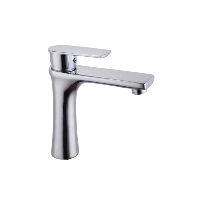 Bathroom mixer tap, modern design, with chrome finish. It has high precision technology for water flow regulation as well as temperature regulation.