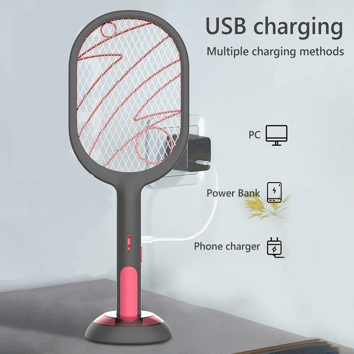 Επαναφορτιζόμενη μεγάλη ηλεκτρική ρακέτα με βάση στήριξης για εύκολη αποθήκευση, με διπλό ηλεκτροφόρο δίχτυ και επαναφορτιζόμενη μπαταρία 1200mAh. Σας απαλλάσσει εύκολα από όλα τα ενοχλητικά έντομα (κουνούπια μύγες μέλισσες κλπ) ενεργοποιώντας την με το πάτημα ενός κουμπιού και απλώς αγγίζοντάς τα. -Ισχύς:5W. -Πλήρης φόρτιση σε 5 ώρες. -Αυτονομία μπαταρίας έως και 10 μέρες. -Προστατευτικό εξωτερικό πλέγμα. -Λυχνία ένδειξης φόρτισης. -Διαστάσεις: συνολικό μήκος 49.6cm, διάμετρος ρακέτας 18.5cm -Διαστάσεις Βάσης: 3.8x13.5cm. -Υλικό: ABS. -Συχνότητα: 50Hz.