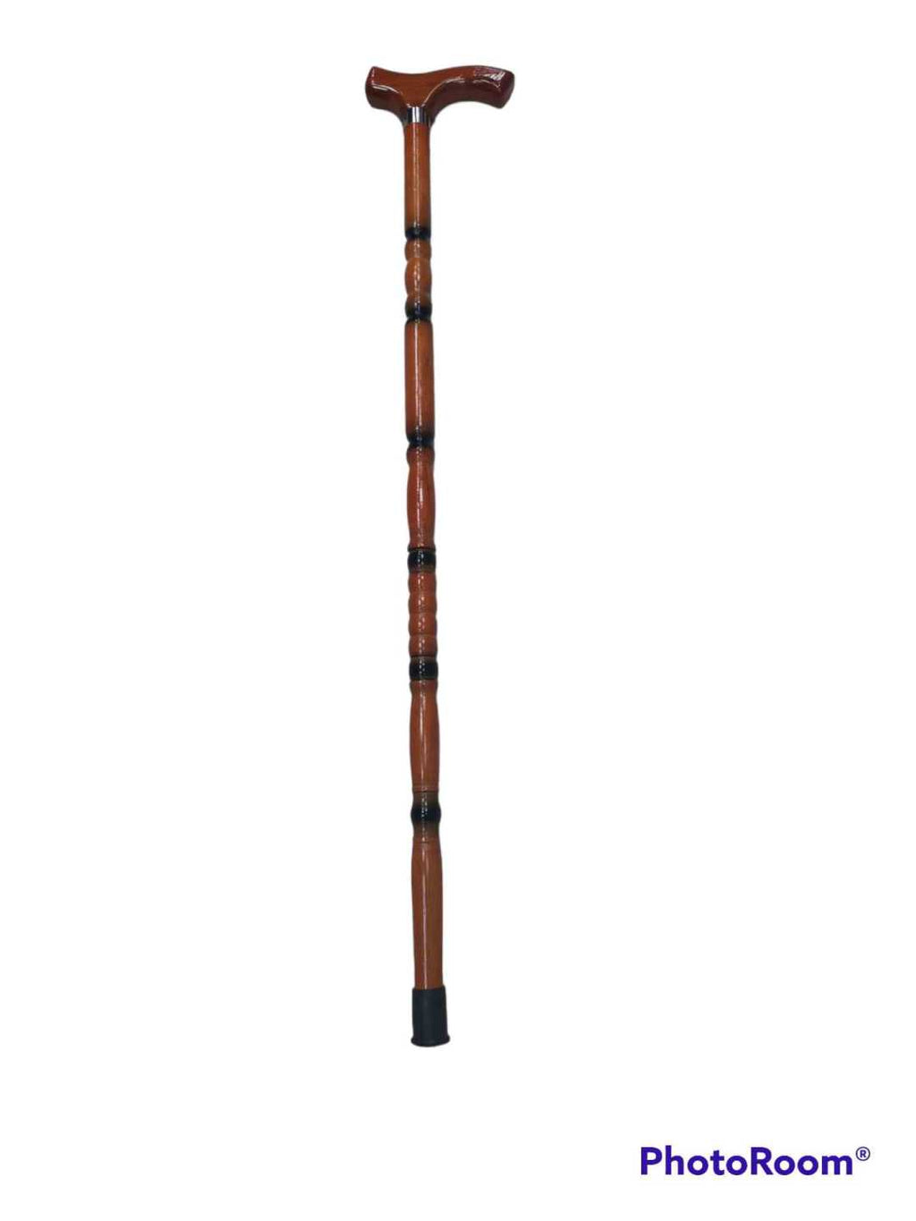 Auxiliary walking stick, wooden, with carved details. It has an ergonomically designed handle for comfortable use for many hours without straining the hand and a reinforced, anti-slip mat.