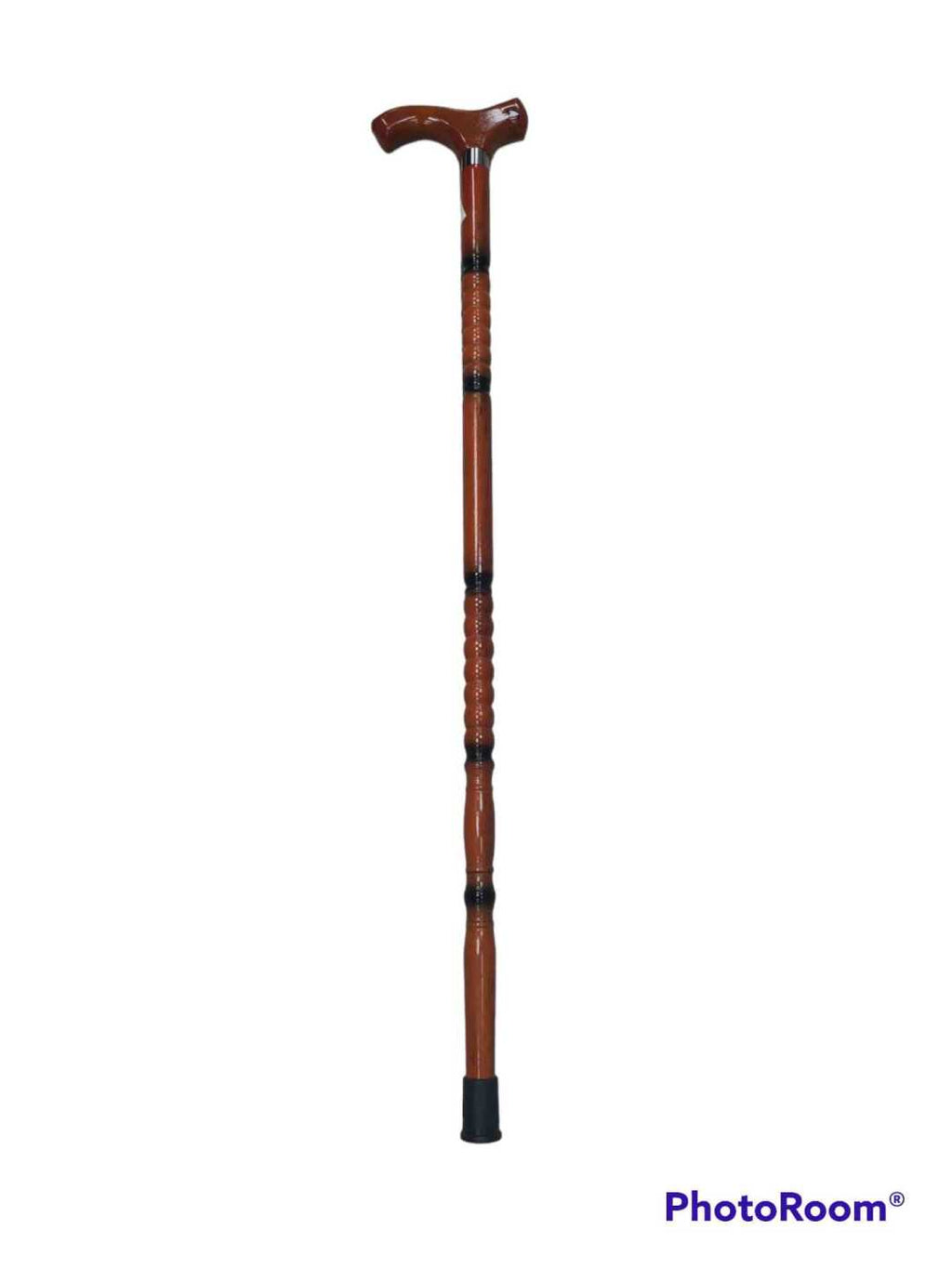 Auxiliary walking stick, wooden, with carved details. It has an ergonomically designed handle for comfortable use for many hours without straining the hand and a reinforced, non-slip mat.