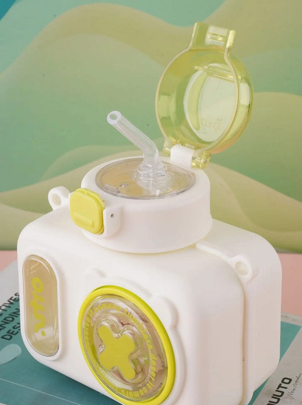 Portable plastic water bottle, with a highly durable casing that helps maintain the temperature of the contents.