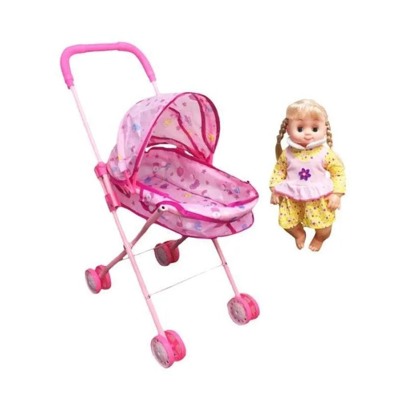 Children's baby stroller with a doll, in a beautiful realistic design with wonderful designs and colors and with a durable construction for endless walks with your doll!