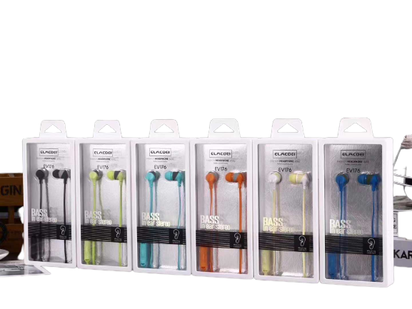 Wired EV headphones with high quality stereo sound, external noise reduction technology and lightweight ergonomic design for comfortable long hours of use. They have a button/controller to answer your calls instantly without having to answer from your smartphone. In a plastic case for easy transport.