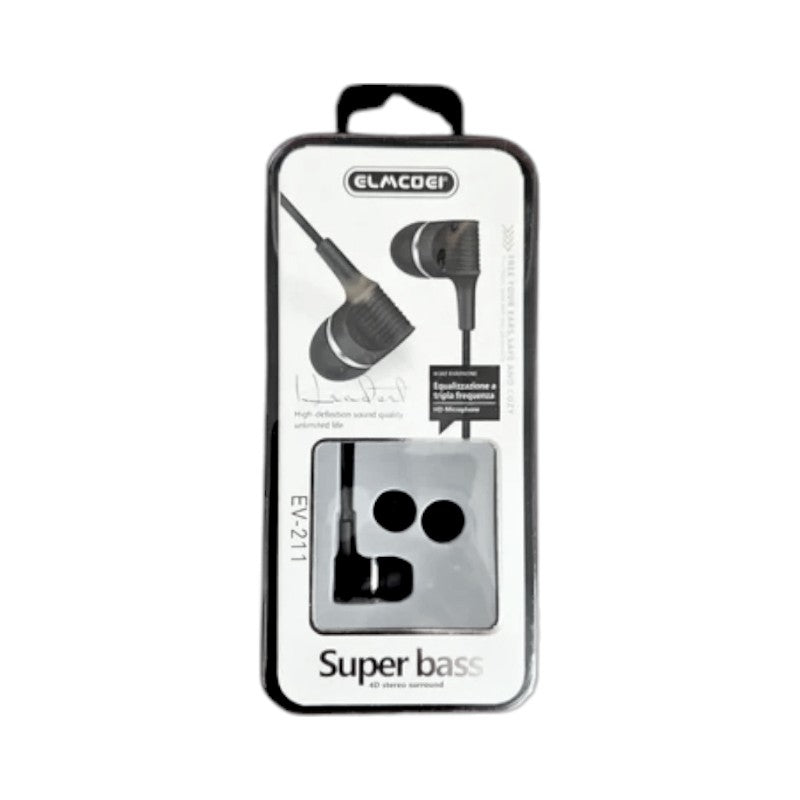 Wired EV headphones with high quality stereo sound, external noise reduction technology and lightweight ergonomic design for comfortable long hours of use. They have a button/controller to answer your calls instantly without having to answer from your smartphone. In a plastic case for easy transport.