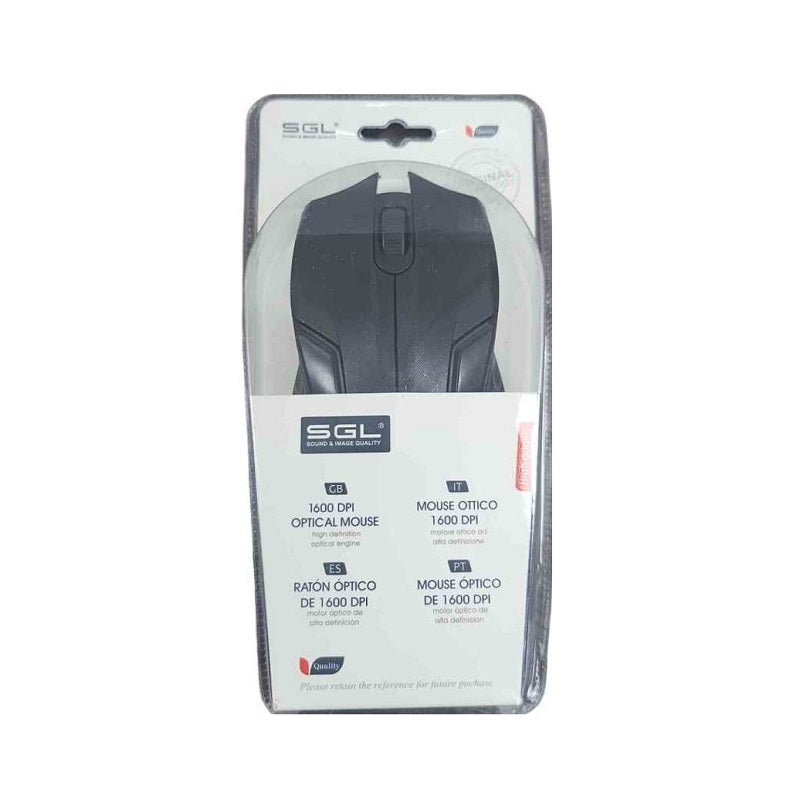 Wired computer mouse by SGL, optical, with ergonomic design and high performance, ideal for daily use.