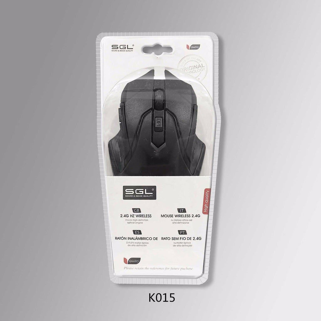 Wireless Gaming Mouse - K015 with ergonomic design, scroll wheel and side adjustment buttons.