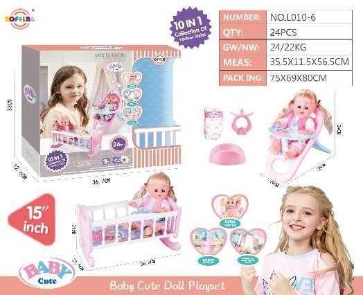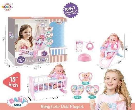 Baby doll with full set of bed, high chair, and accessories to take care of your doll like a real baby!