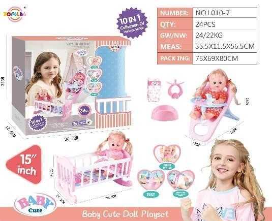 Baby doll with crib and care accessories - L010-7 - 345345