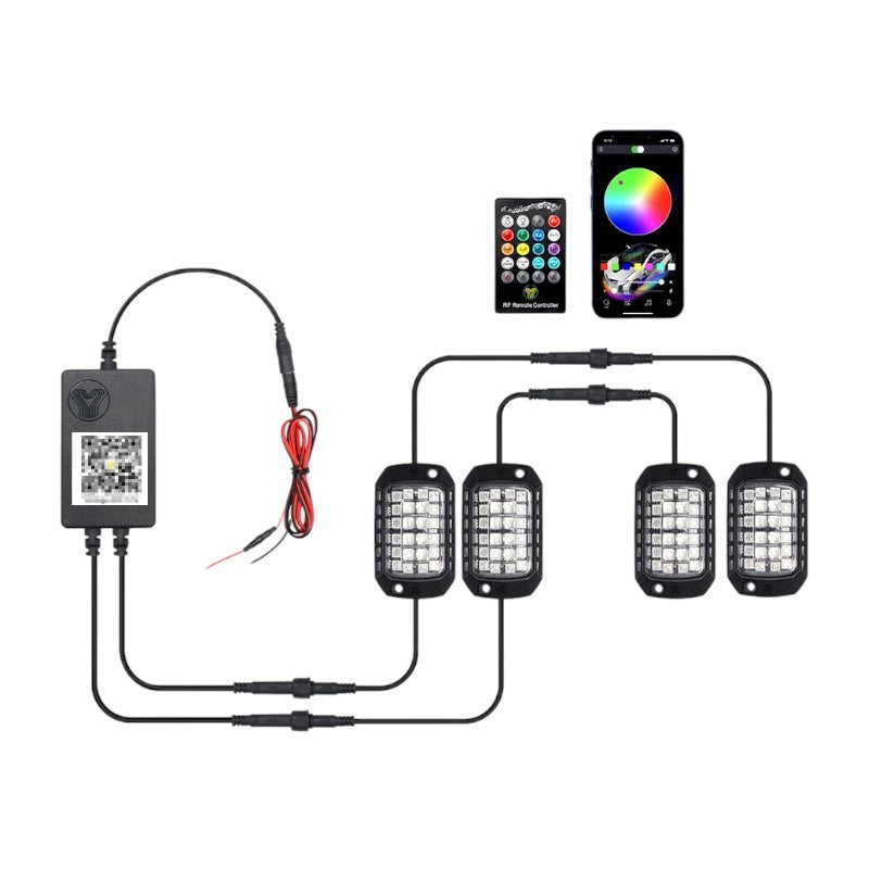 Περιλαμβάνει τέσσερις αδιάβροχους προβολείς LED RGB.