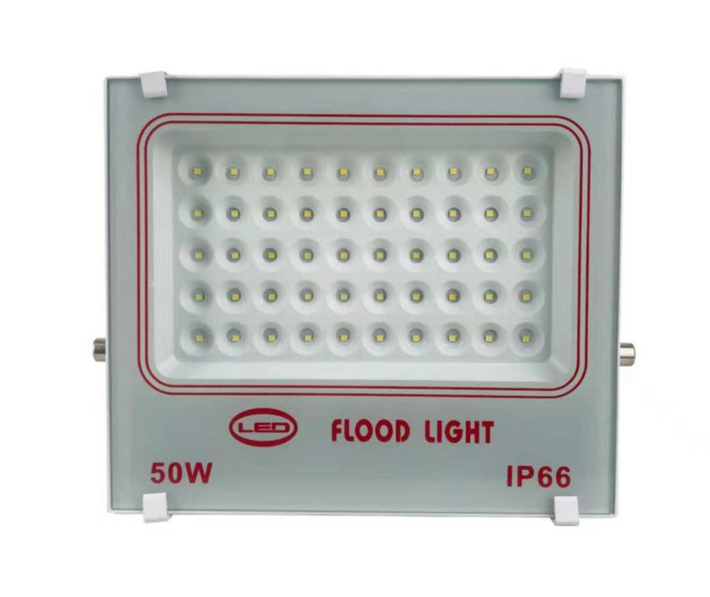 Προβολέας LED σε λευκό χρώμα, με ισχύ 50W. Εκπέμπει ψυχρό λευκό φως, το οποίο αποδίδεται στην κλίμακα Kelvin με τιμές από 5000Κ έως 6800Κ. Διαθέτει βαθμό προστασίας IP66, που δηλώνει ότι έχει πλήρη προστασία από τη σκόνη, ενώ δεν εισέρχεται νερό.