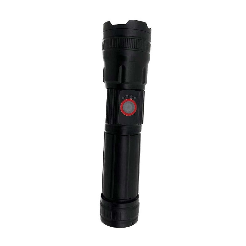 Rechargeable LED flashlight, with powerful lighting and long battery life, particularly durable and with an ergonomic design, ideal for all kinds of outdoor activities and sports.