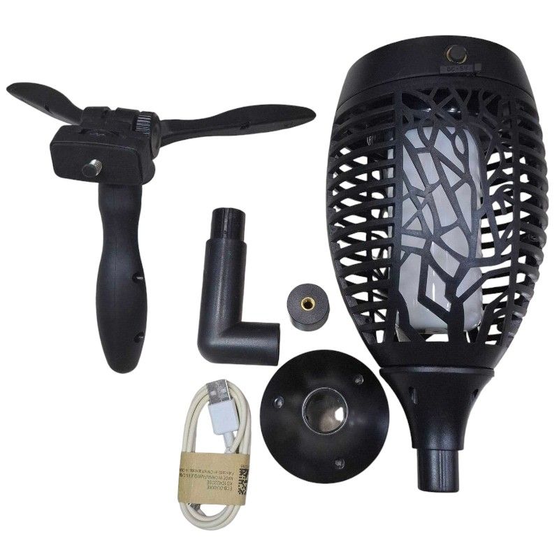 Επαναφορτιζόμενο φωτιστικό κήπου σε μαύρο χρώμα, που φορτίζει με καλώδιο USB για ασύρματη χρήση, με μεγάλη αυτονομία μπαταρίας.