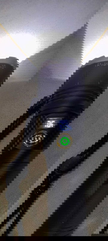 Rechargeable LED flashlight, with powerful lighting and long battery life, particularly durable, with an aluminum housing and ergonomic design, ideal for all kinds of outdoor activities and sports.