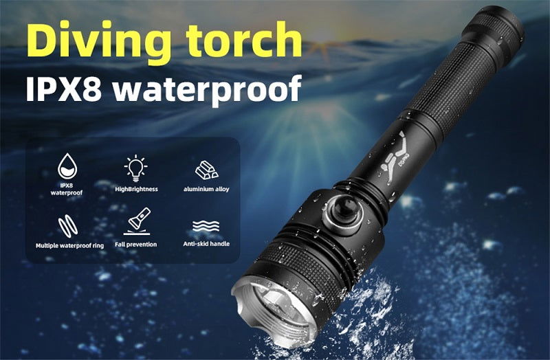 XP-021 rechargeable LED diving light with powerful illumination, 3 functions and a sturdy durable construction with an aluminum housing for maximum durability.