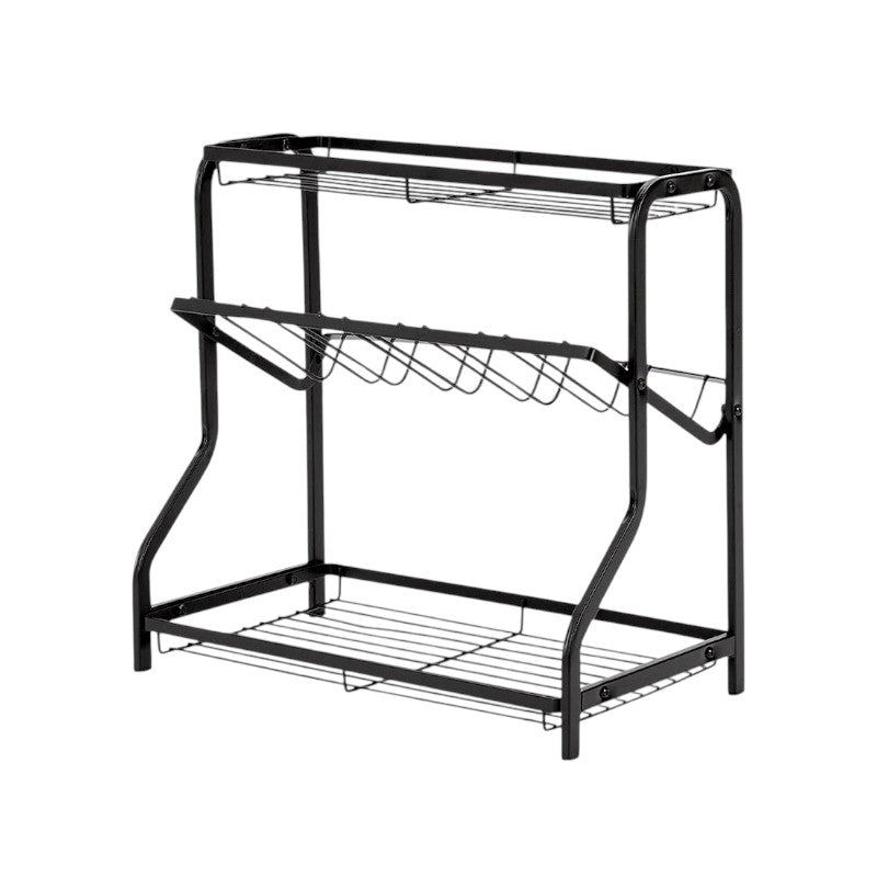 Metal kitchen food rack, with 3 practical shelves suitable for glass containers and bottles.