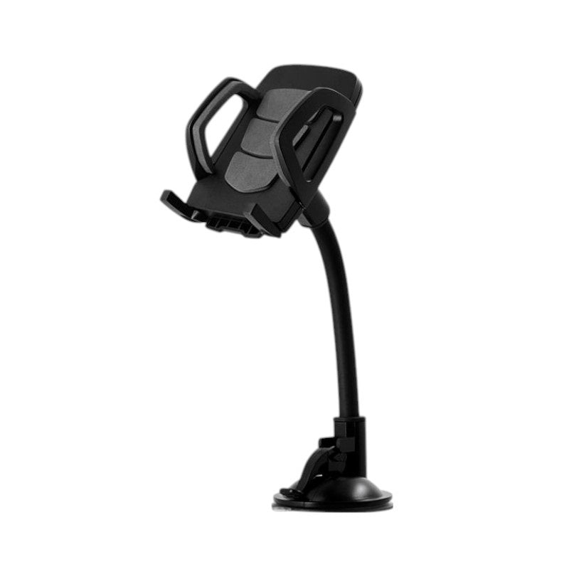 Car smartphone holder with multiple adjustments. Mounts on the dashboard or windshield with a strong suction cup/adhesive. Adjustable width mobile holder, with silicone protectors. Foldable arm. Maximum width/opening of the base: 9cm.