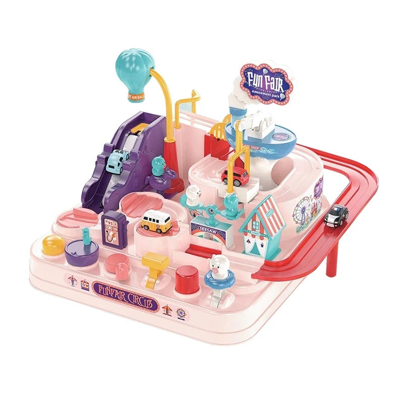 Amusement park car set with a slide for crazy tricks, in a wonderful colorful design, with many surprises, for a game that will captivate you!