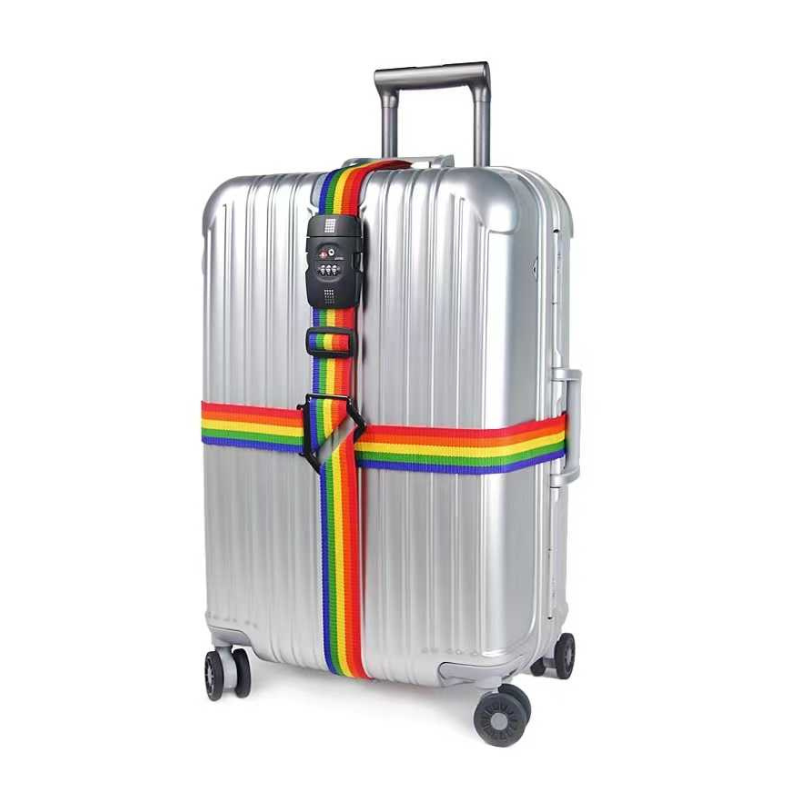 Baggage safety strap, crossed, with 3-digit security code and adjustable length.