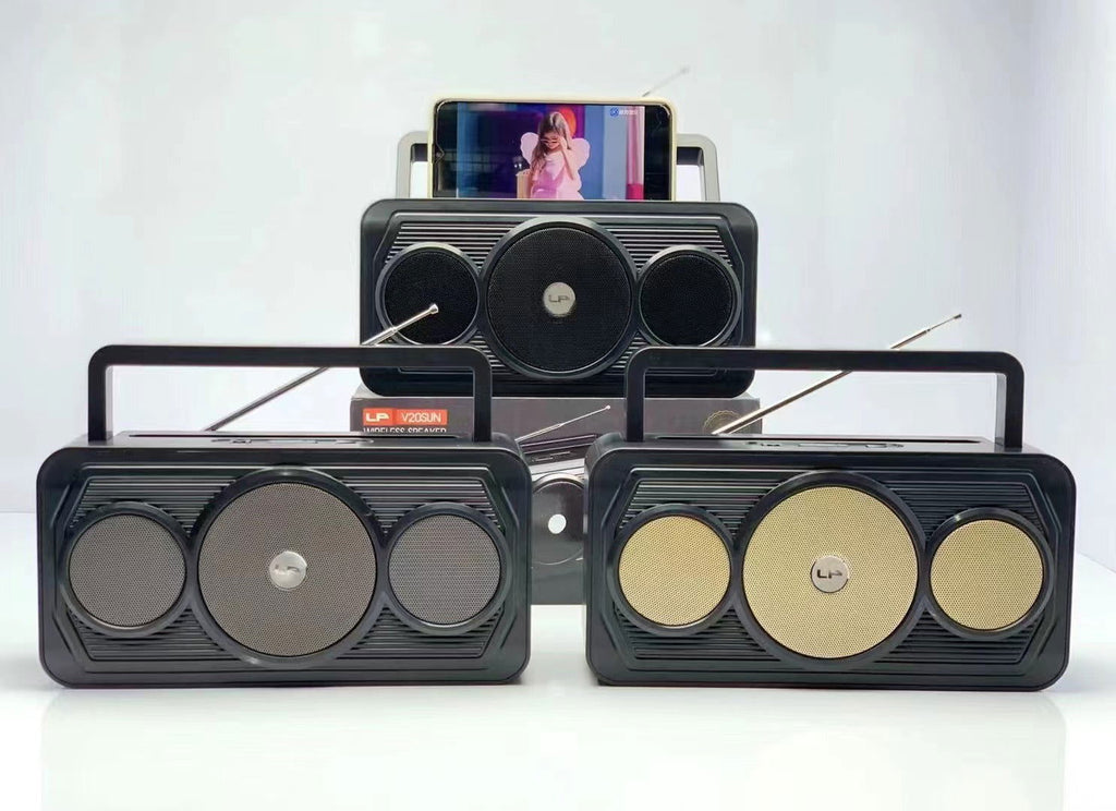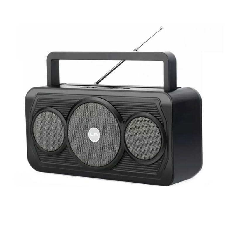Portable radio and wireless Bluetooth speaker, with clear stereo sound with bass effect and ergonomic design, with folding handle for carrying everywhere.