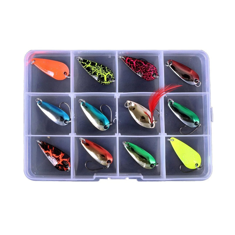 Σετ 12 τεμάχια πλάνοι ψαρέματος με αγκίστρι και κρίκο, σε πρακτική θήκη.