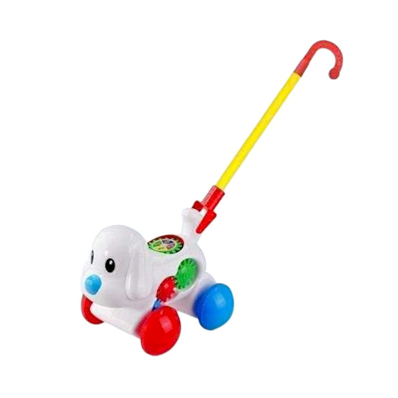 Συρόμενο παιχνίδι Σκυλάκι με γρανάζια που στριφογυρίζουν και κουδουνάκια, με υπέροχο πολύχρωμο σχεδιασμό και εργονομική λαβή για ατελείωτες βόλτες παντού!
