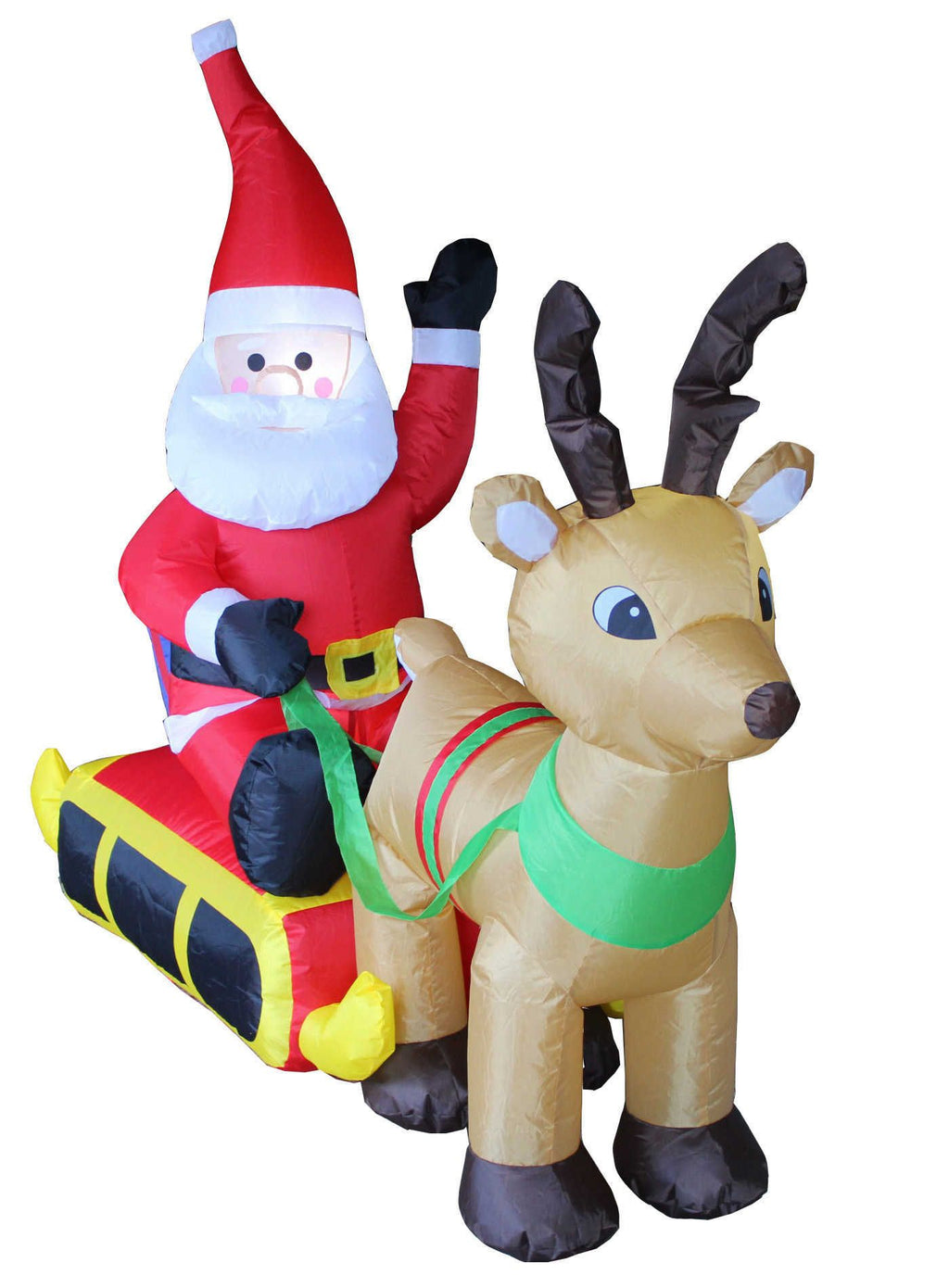 Φουσκωτός διακοσμητικός Άγιος Βασίλης με έλκηθρο & ταράνδους με εσωτερικό φωτισμό LED.