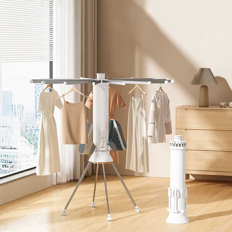 Πτυσσόμενη κρεμάστρα δαπέδου και απλώστρα ρούχων πολλαπλών χρήσεων, με μεταλλικό σκελετό, βάσεις παπουτσιών και ροδάκια μετακίνησης.