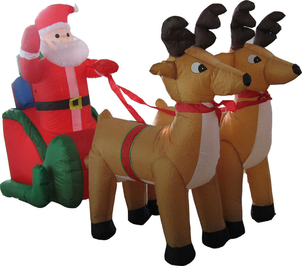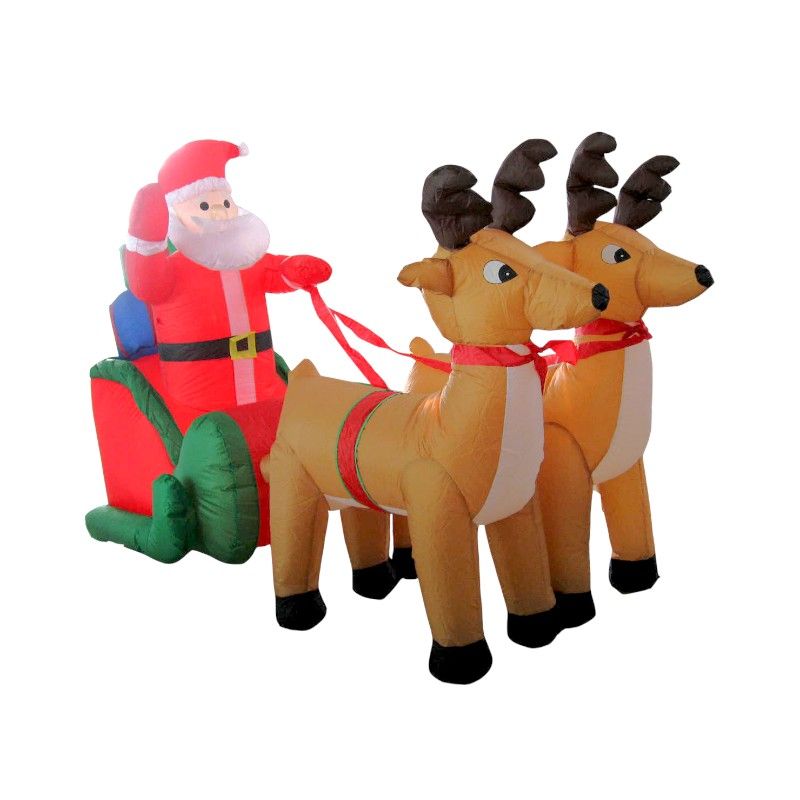 Φουσκωτός διακοσμητικός Άγιος Βασίλης με έλκηθρο & ταράνδους με εσωτερικό φωτισμό LED.