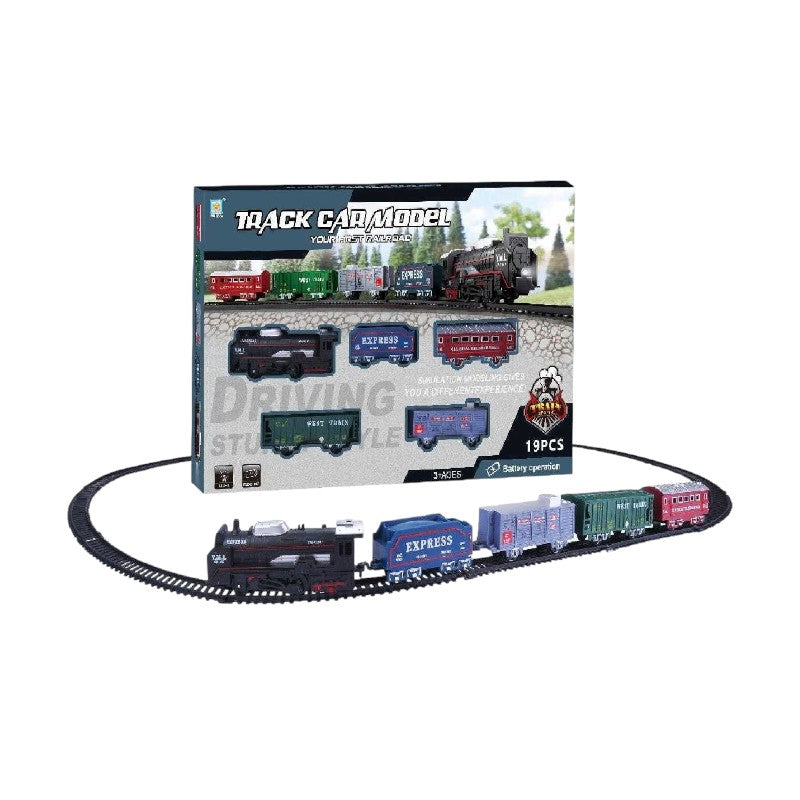 Παιδικό τρενάκι σε Retro σχεδιασμό, για τους λάτρεις του κλασσικού στυλ παιχνιδιών, με συναρμολογούμενες ράγες και κίνηση.