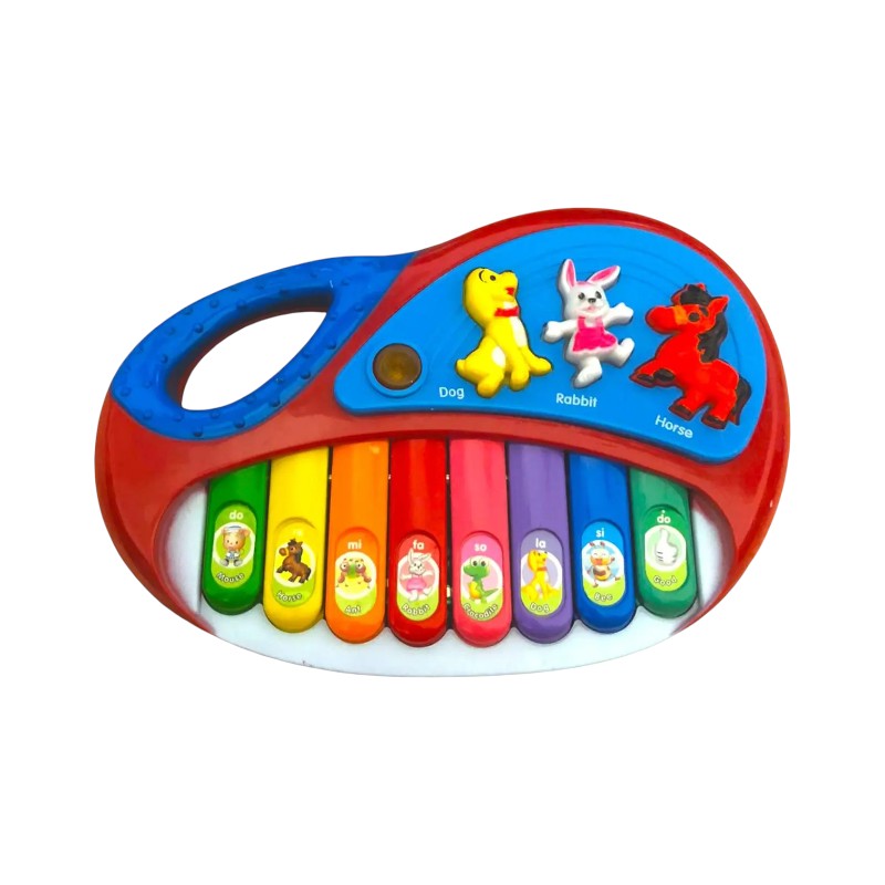 Παιδικό εκπαιδευτικό πιάνο, σε υπέροχο πολύχρωμο σχεδιασμό, με πολλαπλές λειτουργίες και εκπαιδευτικούς ήχους από ζωάκια, για τους μικρούς λάτρεις της μουσικής.