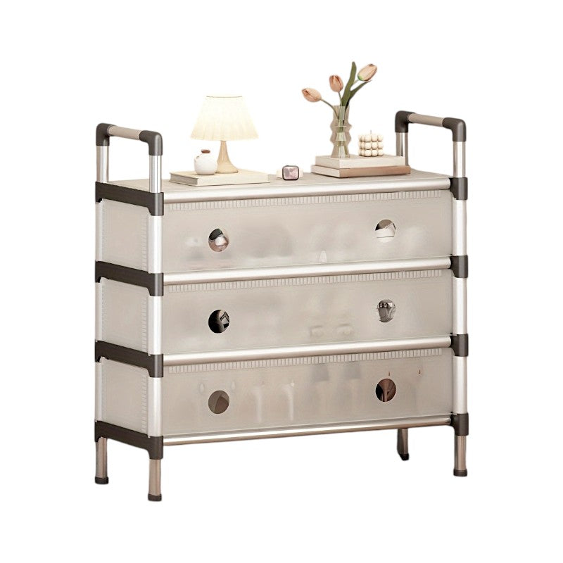 Παπουτσοθήκη δαπέδου με ράφι, με μεταλλικό σκελετό και 3 συρταρωτές θήκες με λεπτή, πλαστική, εύκαμπτη πρόσοψη,
