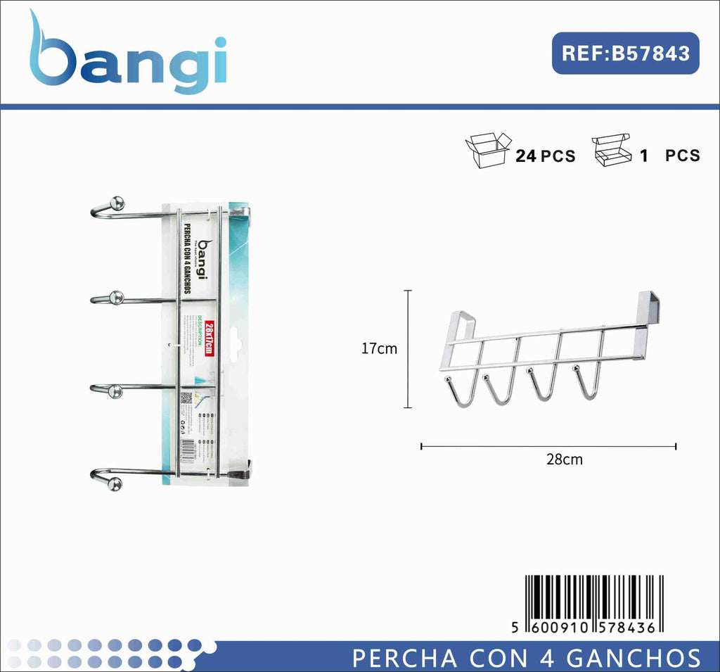 Μεταλλική κρεμάστρα πόρτας 4 θέσεων - 57843