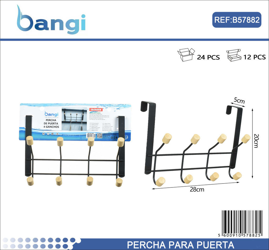 Μεταλλική κρεμάστρα πόρτας 4 θέσεων - 57882