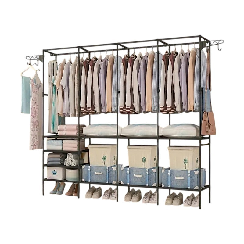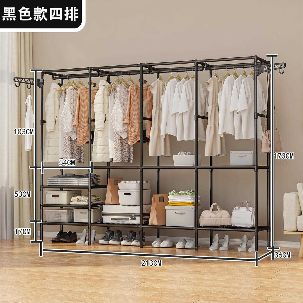 Κρεμάστρα δαπέδου με ράφια 4 στηλών - YH6602-4 - 114050 - Black