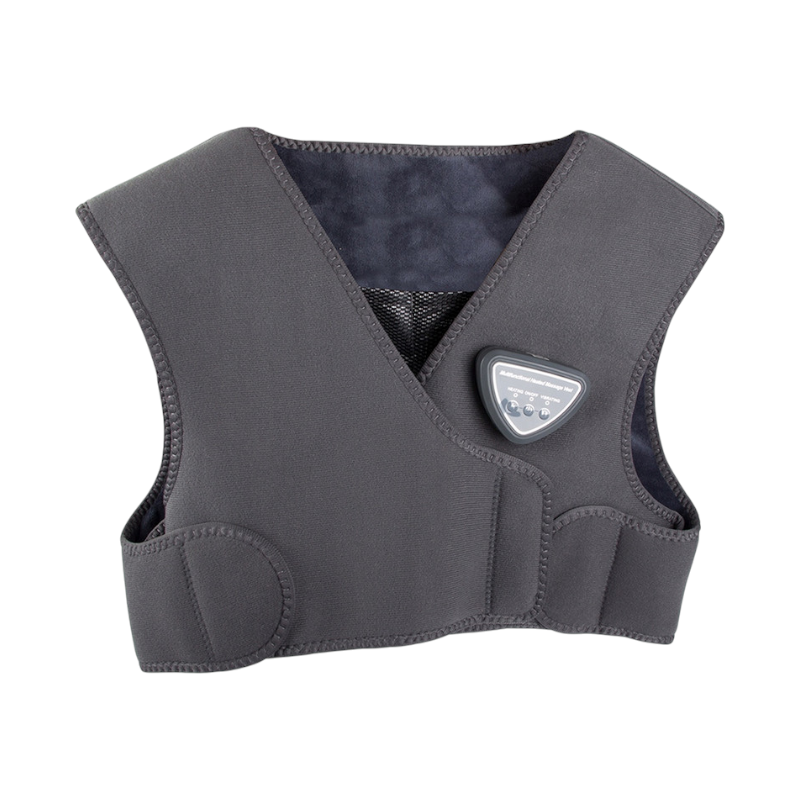 Θερμαινόμενο γιλέκο μασάζ πλάτης-αυχένα, επαναφορτιζόμενο, ιδανικό για την ανακούφιση της μέσης και του αυχένα σας από πόνους μυοσκελετικούς και πιασίματα. Χαλαρώνει του μύες, βελτιώνει την κυκλοφορία του αίματος και σας ανακουφίζει από πόνους και ενοχλήσεις, ενώ χάρη στη φορητότητά του, μπορείτε να το φοράτε παντού: στο σπίτι, στο αυτοκίνητο, στο γραφείο ή το ταξίδι σας.