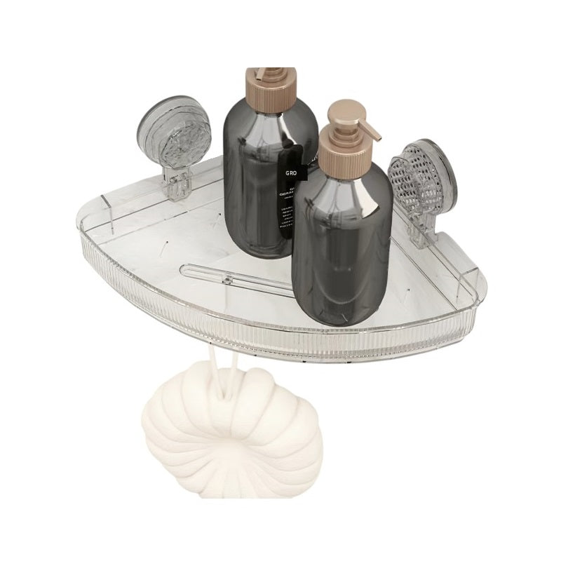 Επιτοίχιο γωνιακό ράφι μπάνιου, πλαστικό, με κρεμάστρες.