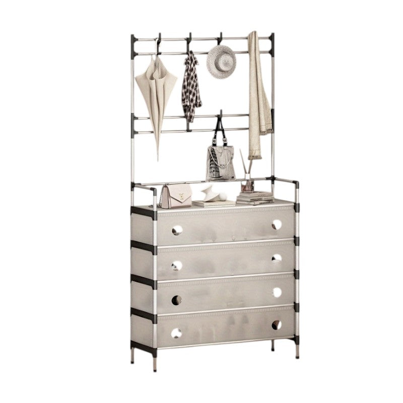 Κρεμάστρα δαπέδου με μεταλλικό σκελετό και συρταρωτές θήκες παπουτσιών και αξεσουάρ με λεπτή, πλαστική, εύκαμπτη πρόσοψη,