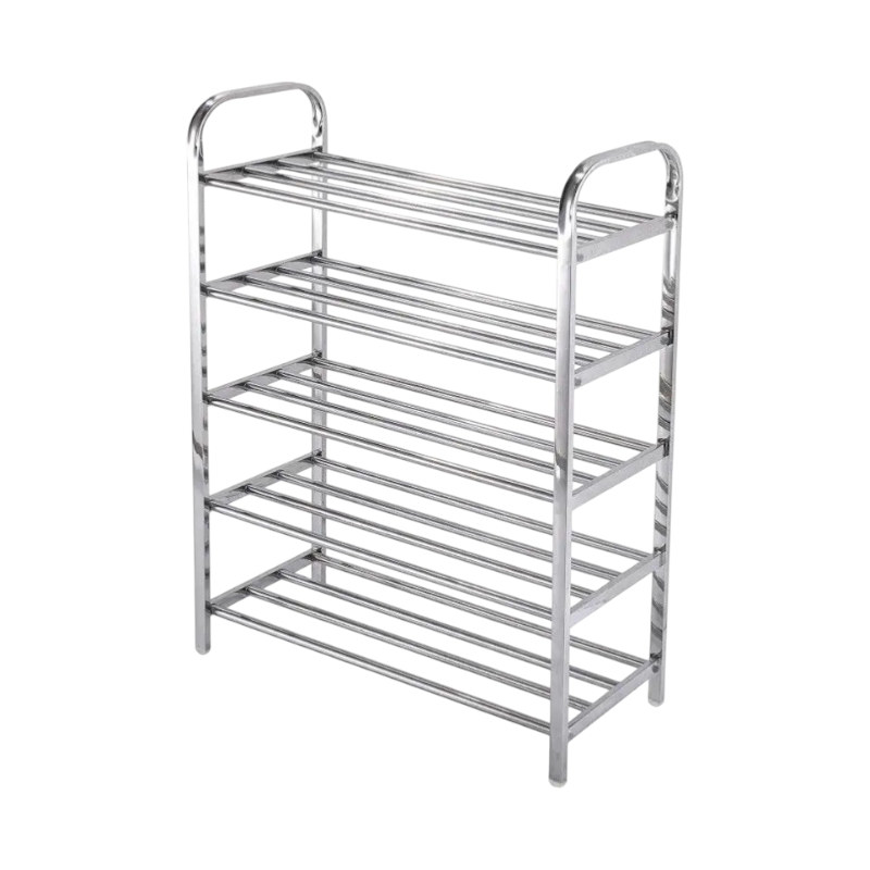 Ραφιέρα παπουτσιών αλουμινίου, 5 επιπέδων. Διαθέτει αντιολισθητικά πατάκια για την προστασία του πατώματός σας. Ιδανική για έπιπλο εισόδου ή οργάνωση αποθήκης. Διαστάσεις: 87 x 55 x 24cm
