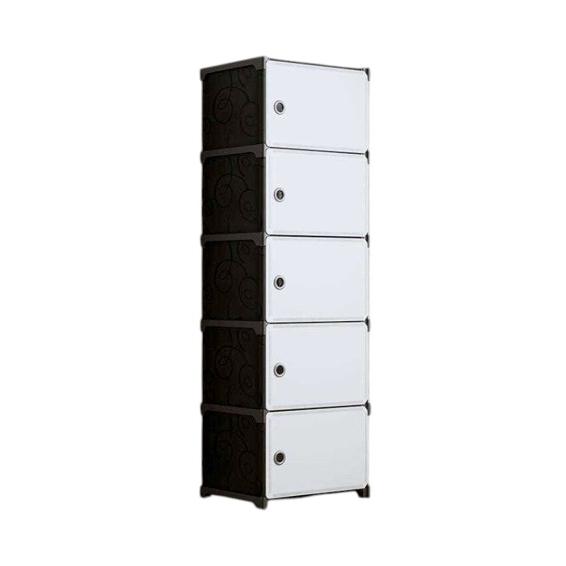 Πλαστικό ντουλάπι αποθήκευσης δαπέδου 5 επιπέδων, με στιβαρό σκελετό και θήκες με πορτάκι από λεπτό, εύκαμπτο πλαστικό υλικό μεγάλης ανθεκτικότητας,
