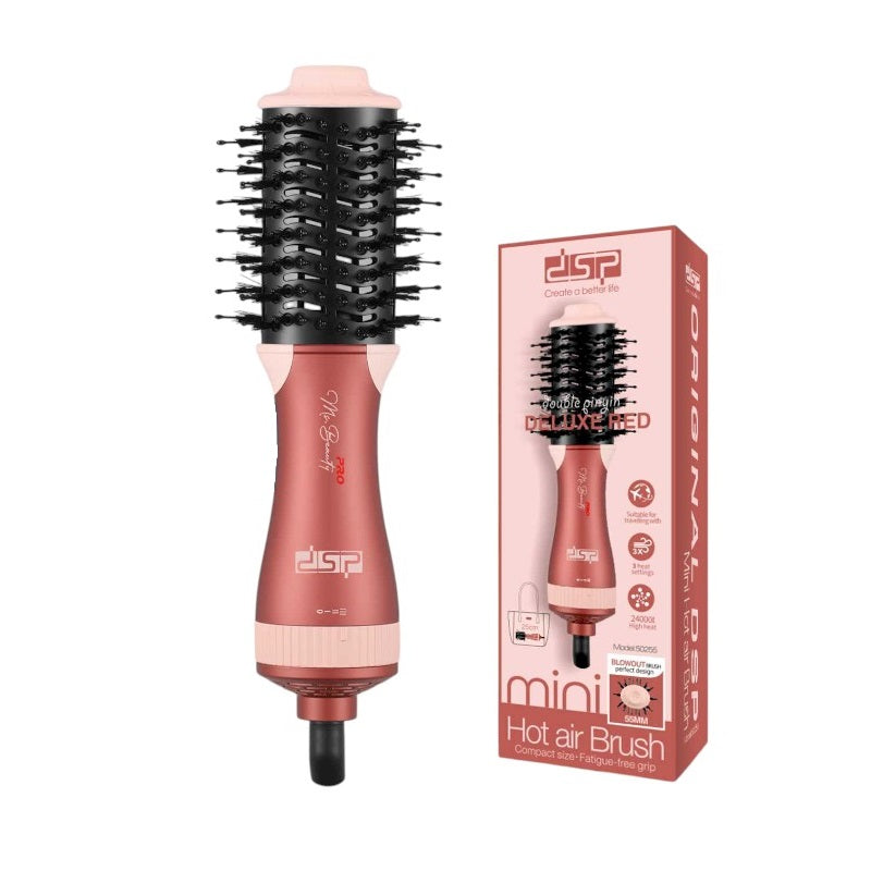 Ηλεκτρική βούρτσα μαλλιών της DSP, που στεγνώνει, χτενίζει και φορμάρει τα μαλλιά σας σε ελάχιστο χρόνο με τη δύναμη του αέρα, προστατεύοντάς τα παράλληλα από τη φθορά της θερμότητας, αφήνοντας ένα λείο, λαμπερό αποτέλεσμα.