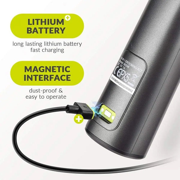 Διαθέτει πλήρες σετ με 5 εξαρτήματα για κούρεμα, ξύρισμα, trimming και περιποίηση μύτης/αυτιών/φρυδιών.